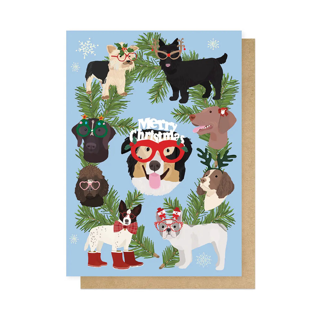 Christmas Dogs in Glasses Greetings Card