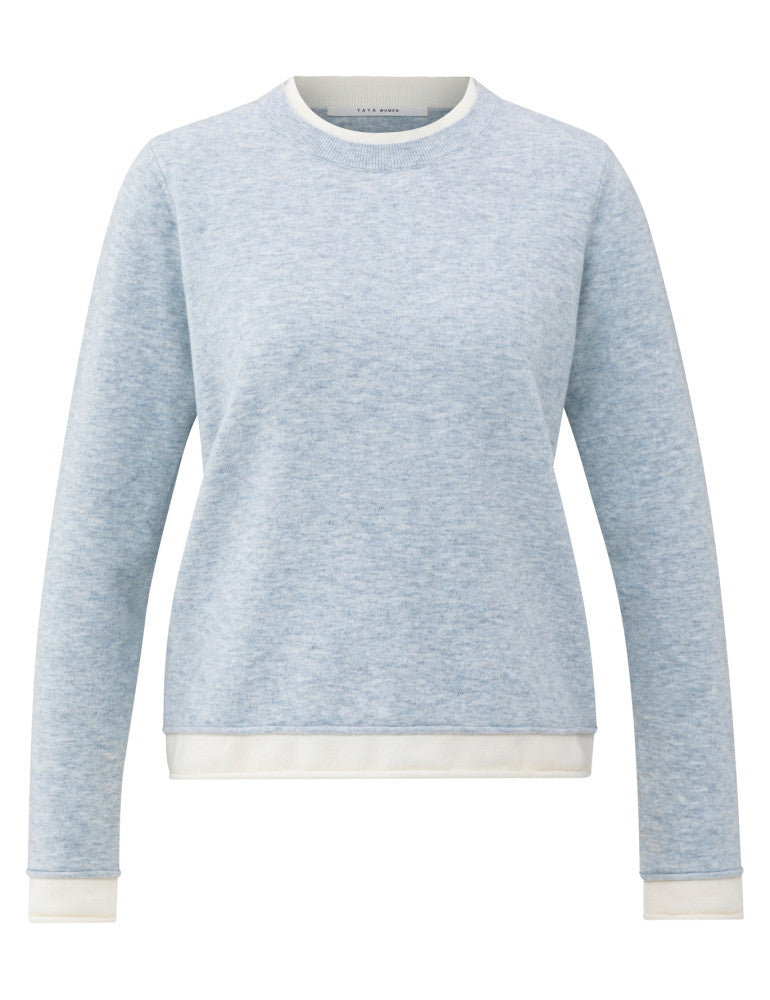 This soft cotton-blend sweater features a straight fit and contrasting trims that create a layered look. Designed with a crew neck and long sleeves, its a versatile piece for effortless everyday styling. Perfect to pair with your favorite jeans for a casual yet refined outfit. The model is 173 cm and wears size S.