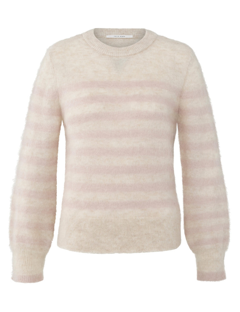 This soft sweater is knitted from a warm wool blend and features a classic round neckline, long sleeves, and a straight fit. Designed with bold stripes in contrasting colours, it adds a playful touch to your look. Perfect for a warm and stylish outfit. The model is 178 cm and wears size S.
