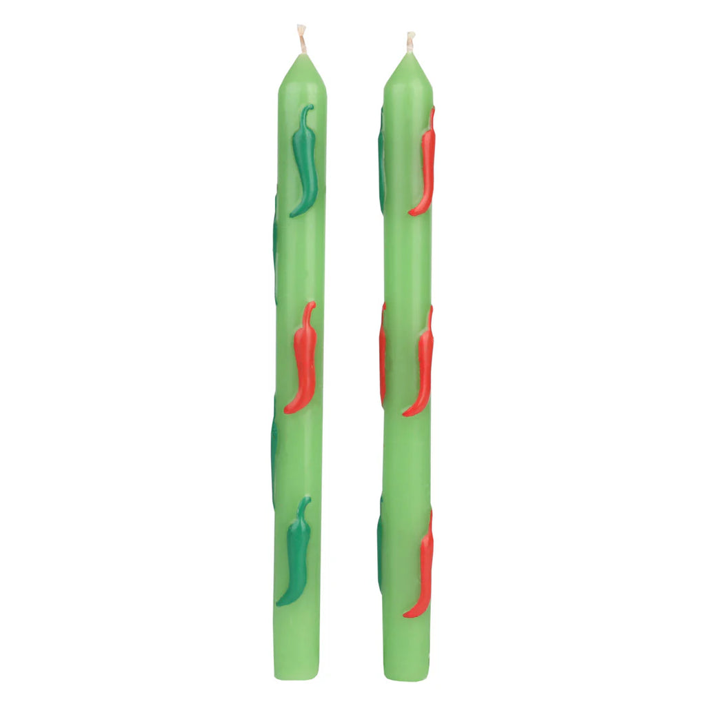 Spice up your table with these bold green dinner candles. Perfect for foodies and fun hosts, they bring playful flair and a warm glow to any gathering. Whether it’s taco night or Christmas dinner, this pair of candles serves serious style with a side of heat.
