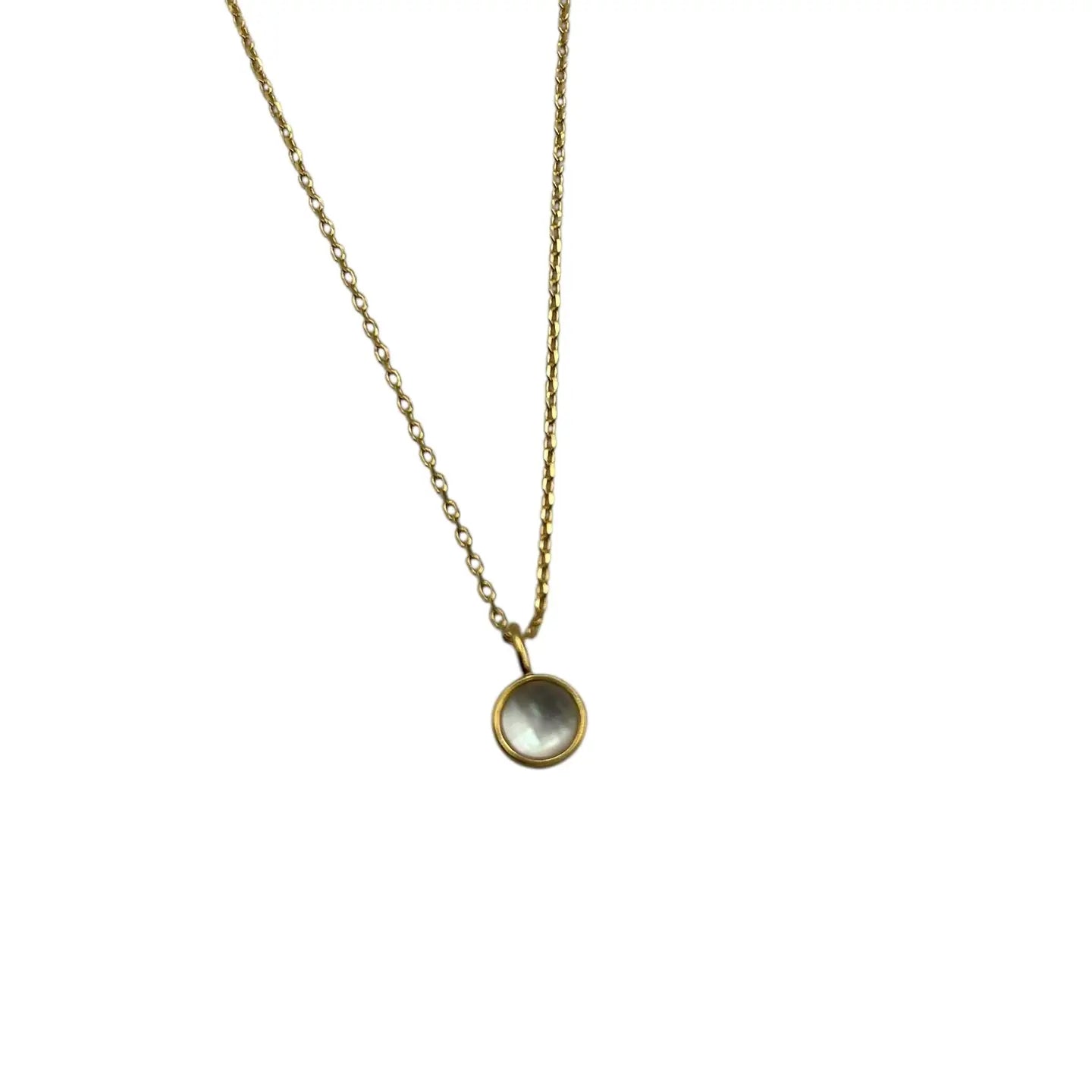 Elegant, mother of pearl pengdant necklace. Made in Seoul. Made of brass and mother of pearl. Nickel free / Lead free / Cadmium free.