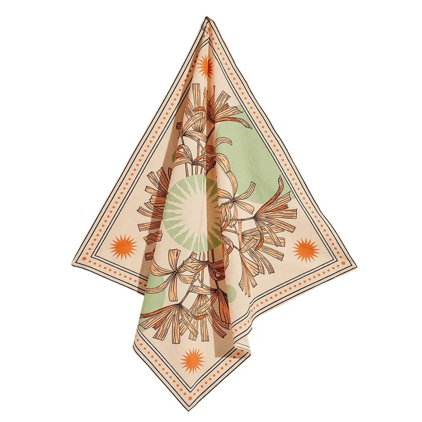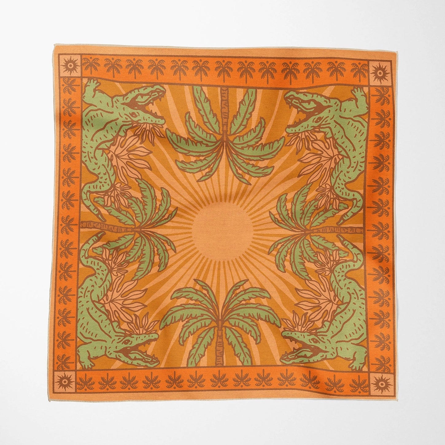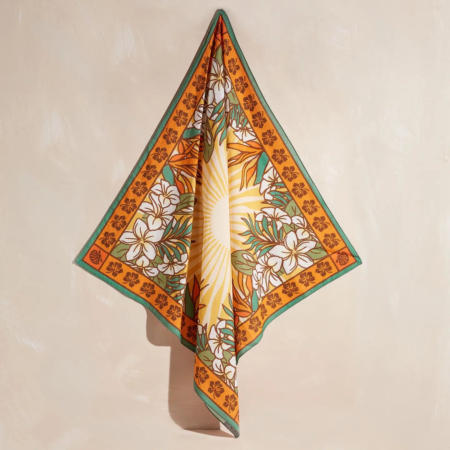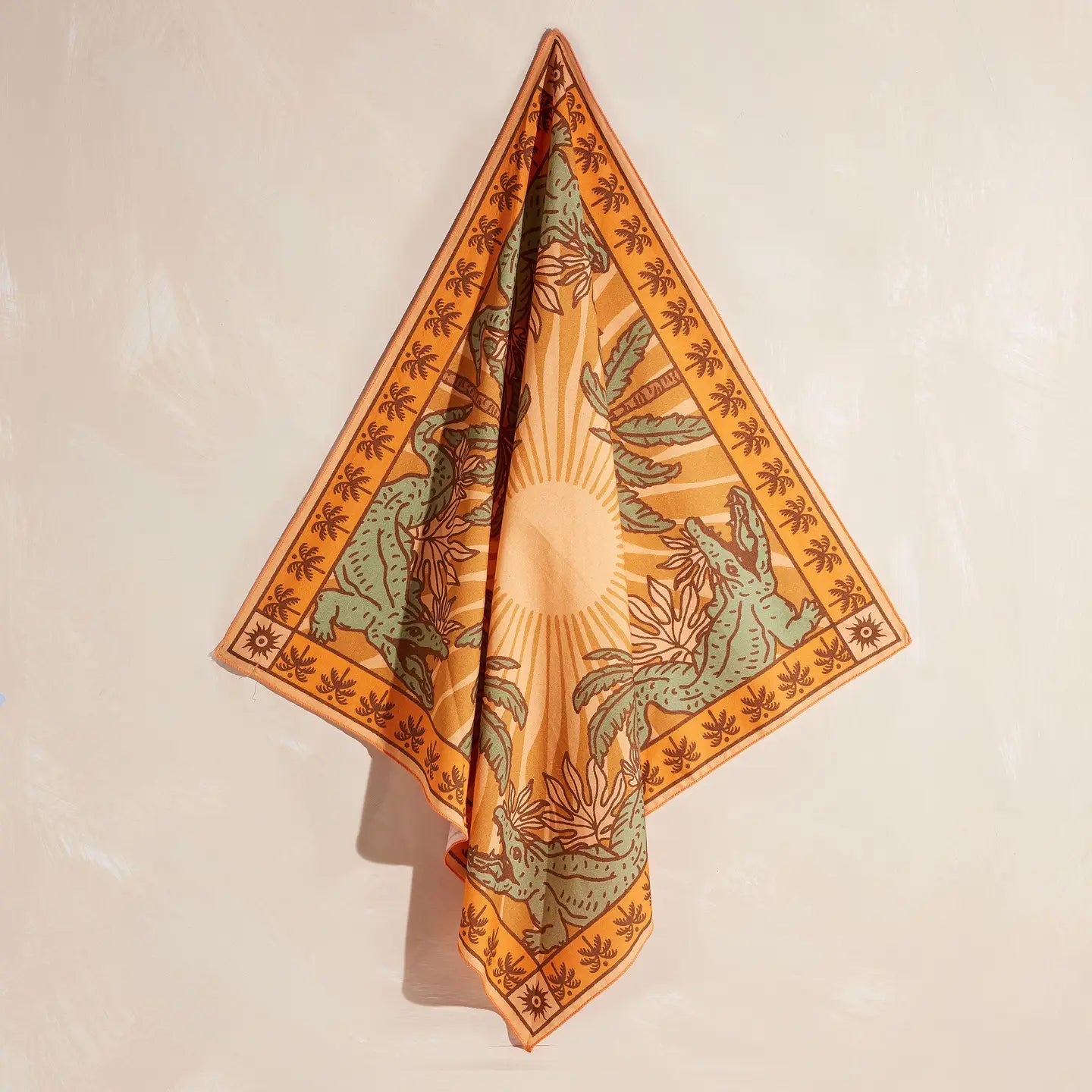 Accessorize your style with this bold, colourful, printed bandana featured in a classic cai & jo tropical design that you can use as a face covering, tie into your hair, use as a neck scarf and more! • 55 x 55cm (21" x 21") • 100% Organic Cotton, sustainably sourced and GOTS Certified • Ethically made by hand in India Care: Can be machine washed. Line or tumble dry. Do not expose to high heat or bleach