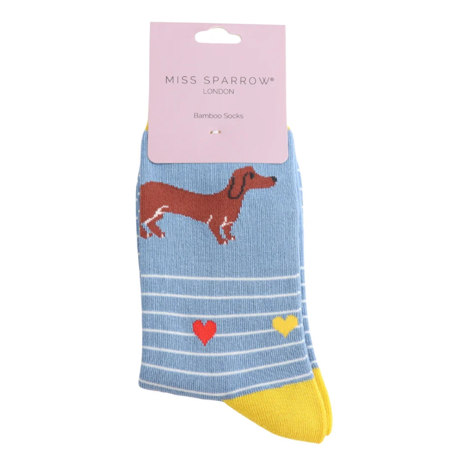 Miss Sparrow Socks Sausage Dog and Stripes (Denim)