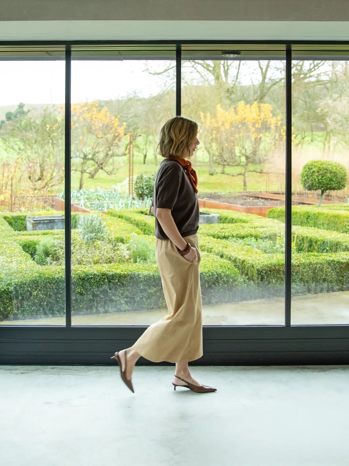 The Molly Trouser is a cropped wide-leg style with an elasticated waist and a flat front waistband for a clean look. It includes practical side pockets, combining comfort with effortless style.
