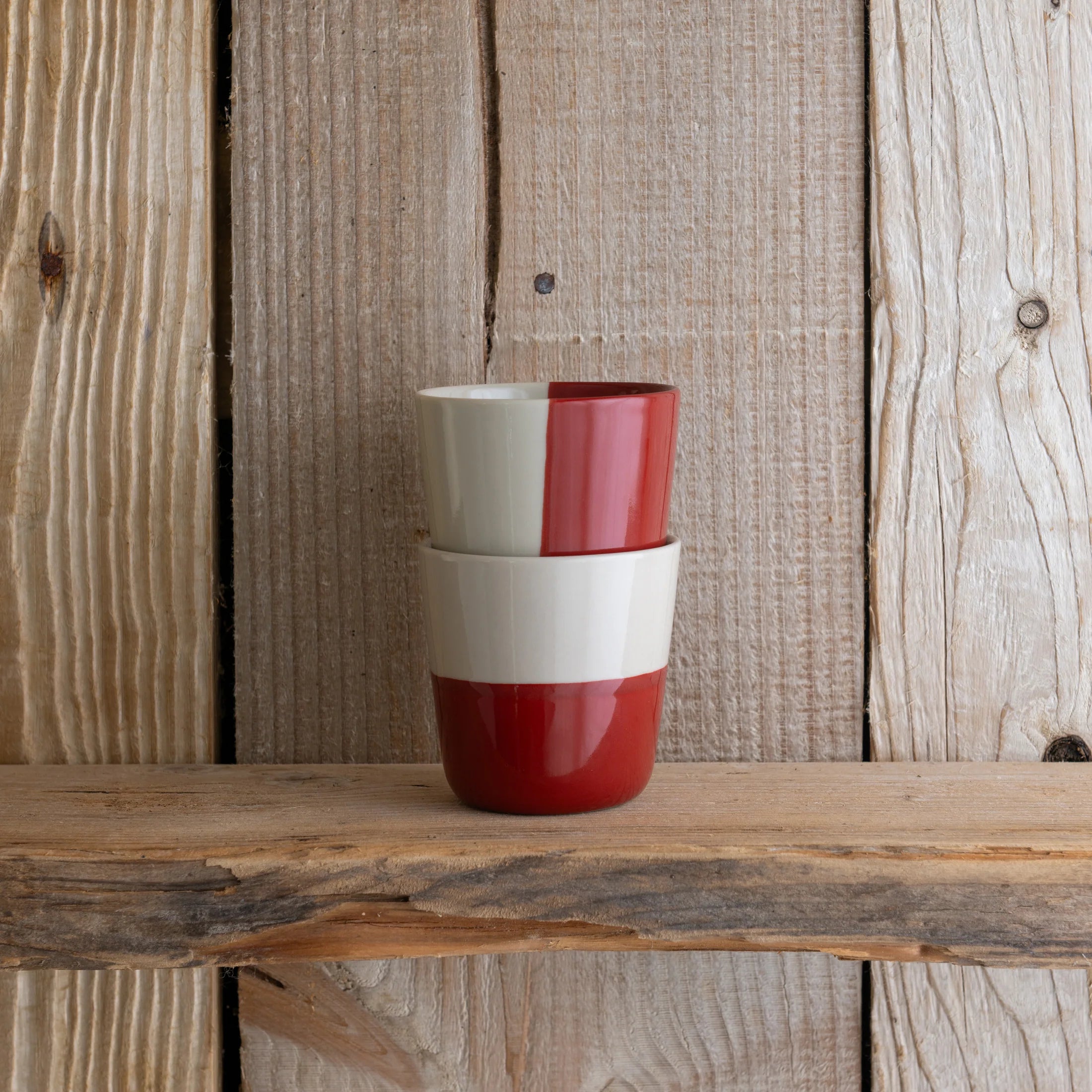 Each beaker is hand-dipped in a half-glaze finish, giving it a playful yet refined contrast of colour and tone. The tactile gloss surface feels smooth to the touch. The subtle tone variation and pleasing texture make these beakers as delightful to look at as they are to hold.