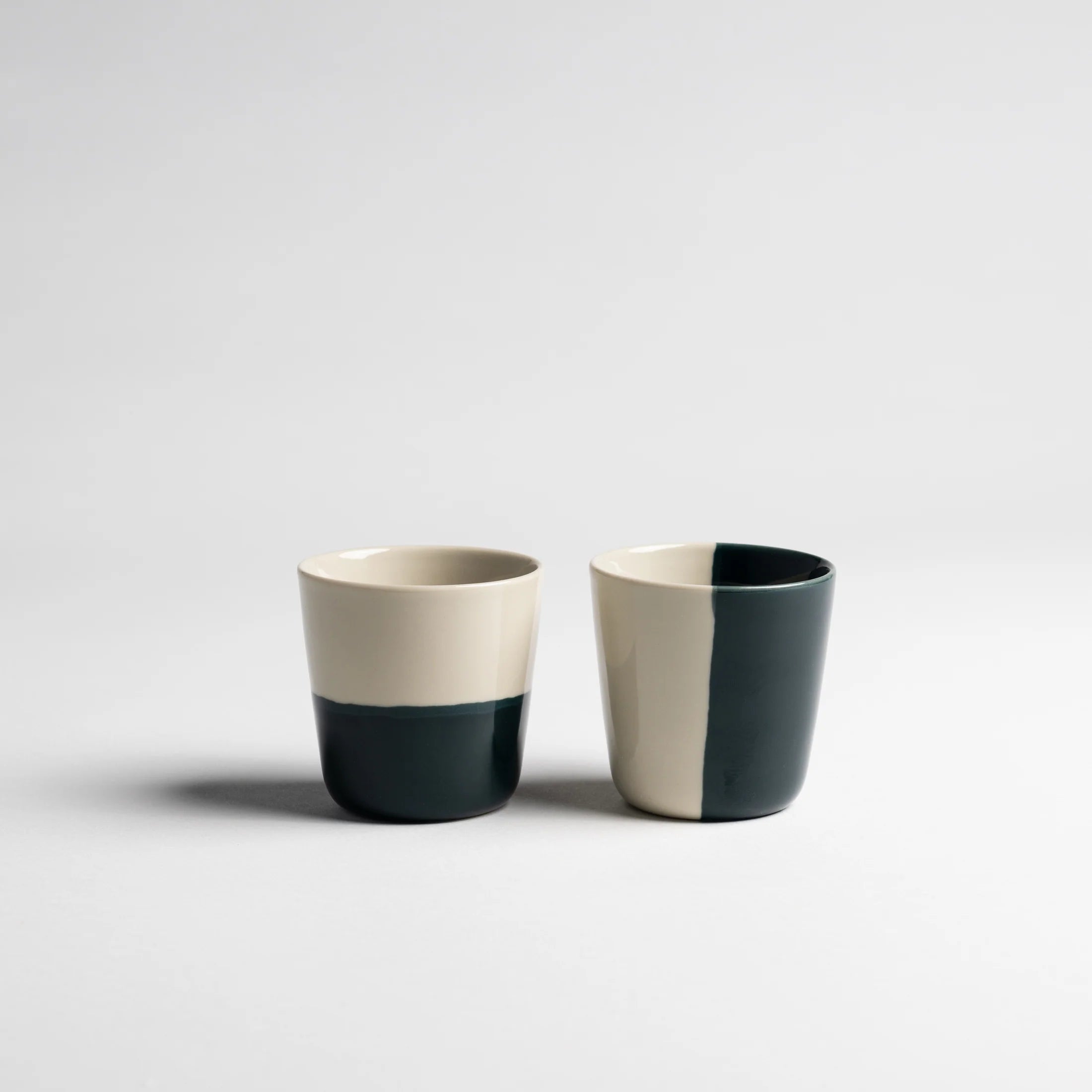 Each beaker is hand-dipped in a half-glaze finish, giving it a playful yet refined contrast of colour and tone. The tactile gloss surface feels smooth to the touch. The subtle tone variation and pleasing texture make these beakers as delightful to look at as they are to hold.
