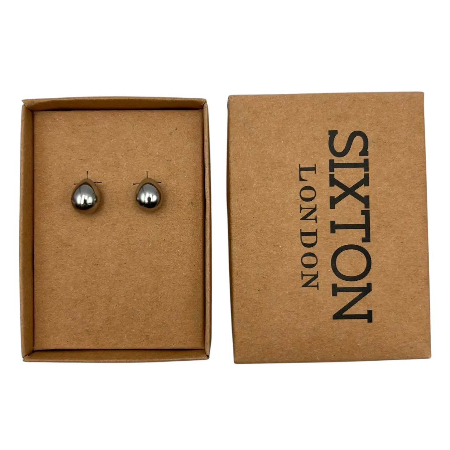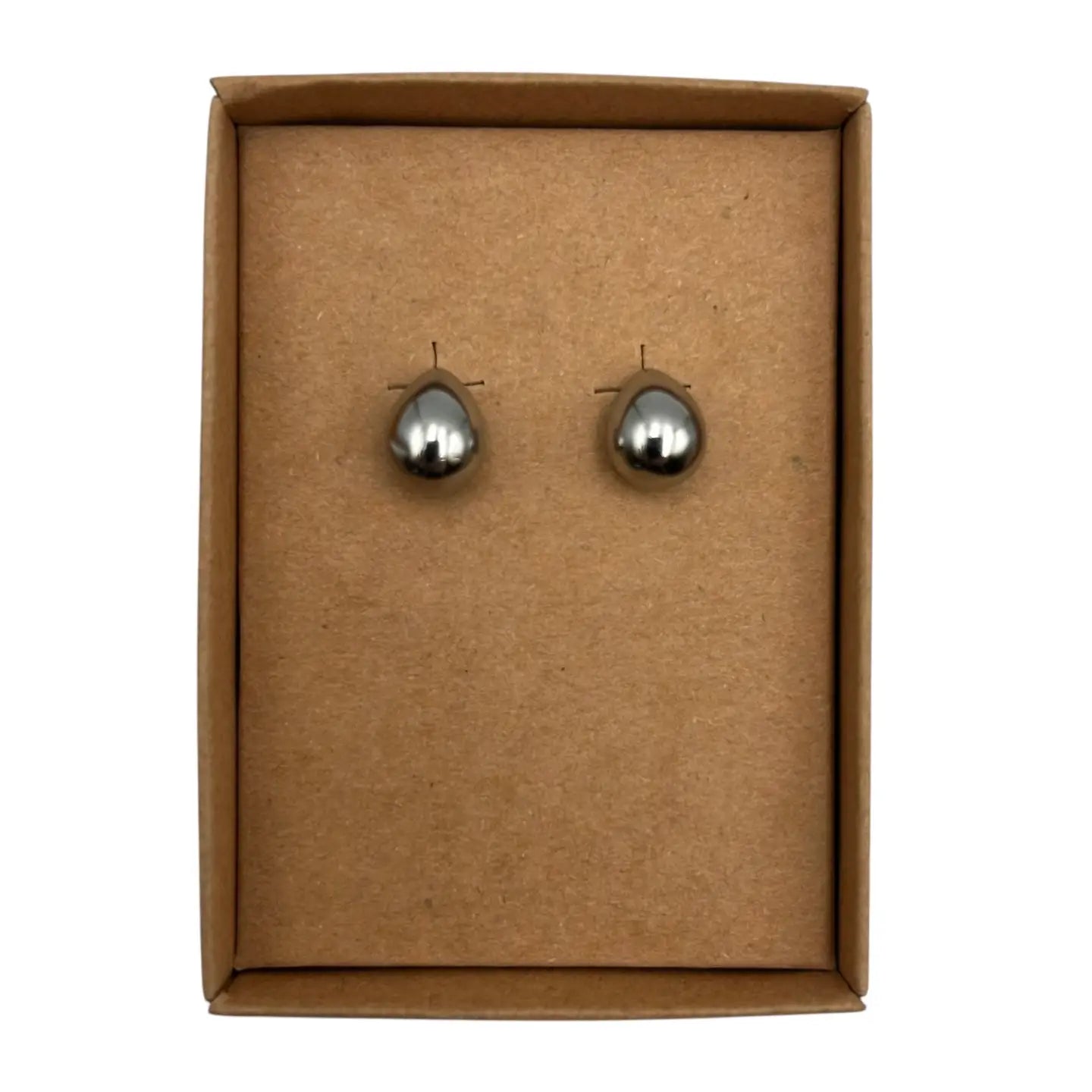 Elegant, silver coloured droplet earrings. Made in Seoul. Made of surgical steel. Nickel free / Lead free / Cadmium free.