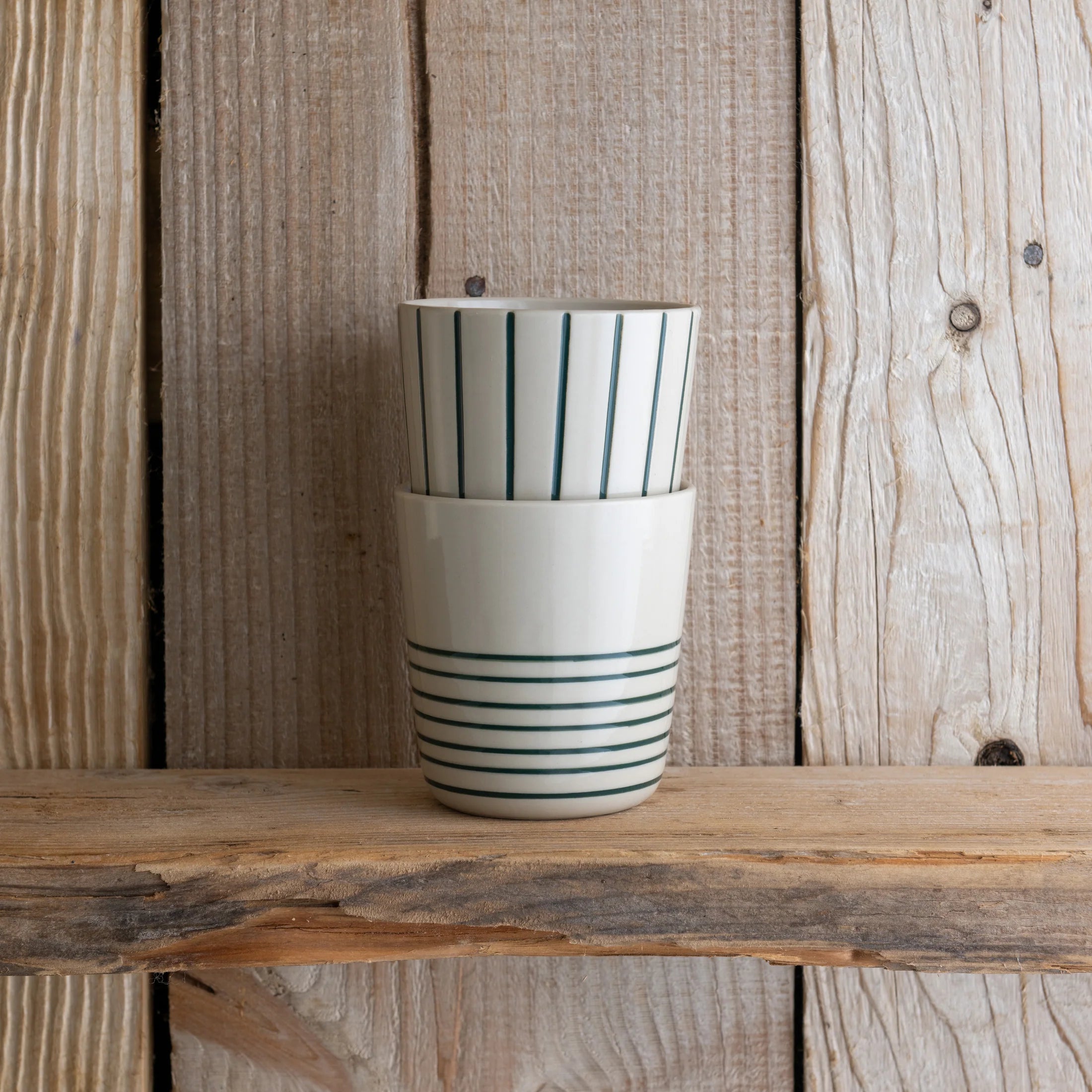 Each beaker features hand-etched linework, crafted using simple tools to create a beautifully tactile surface. The lines are then hand-painted and finished with a smooth gloss glaze. Designed for teas, lattes, cappuccinos, and americanos — this beaker is a quiet companion for every chat that matters.