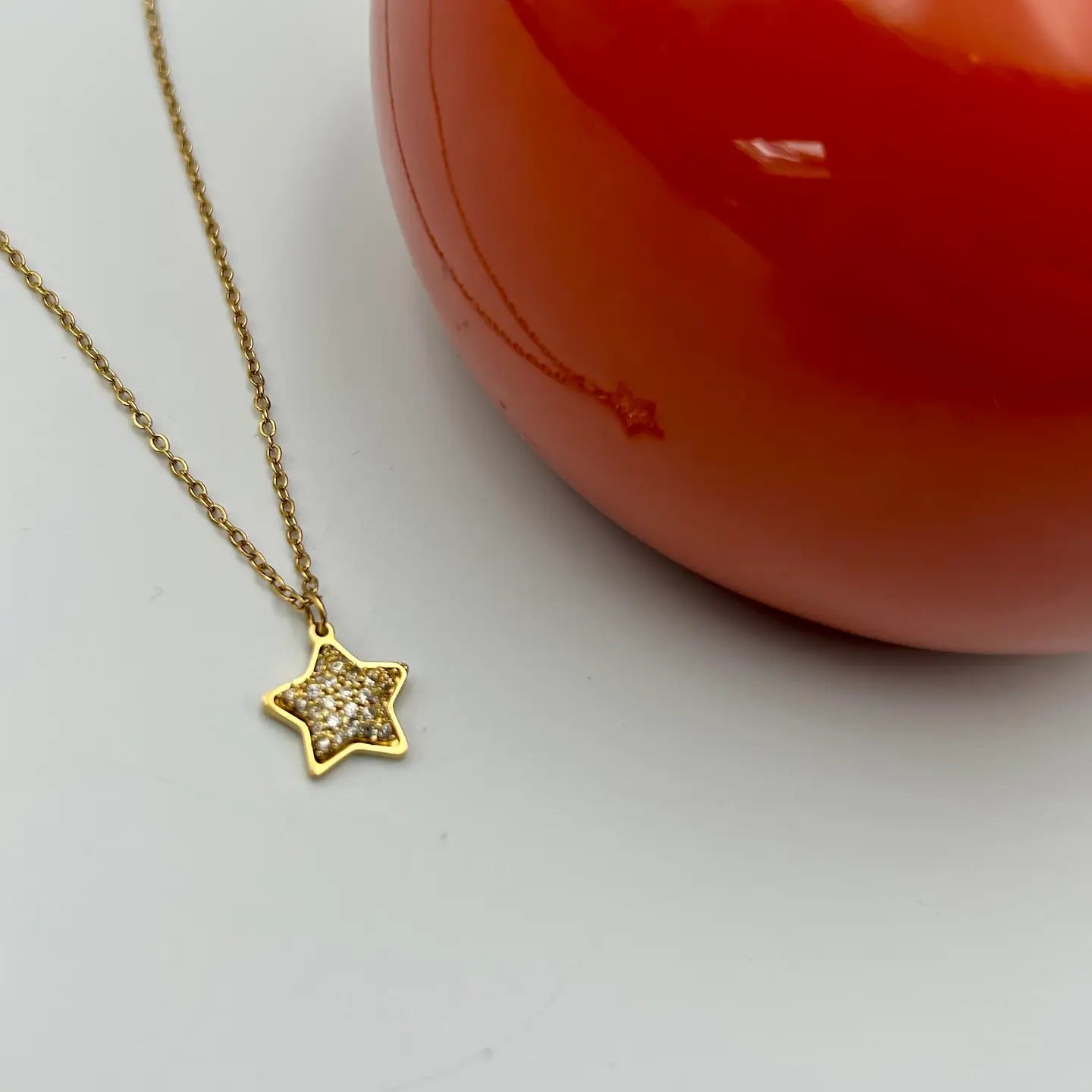 A pretty, sparkly star necklace The necklace measures 40cm, with an optional 5cm extension. Made in South Korea of stainless steel. Nickel free / lead free / cadmium free.
