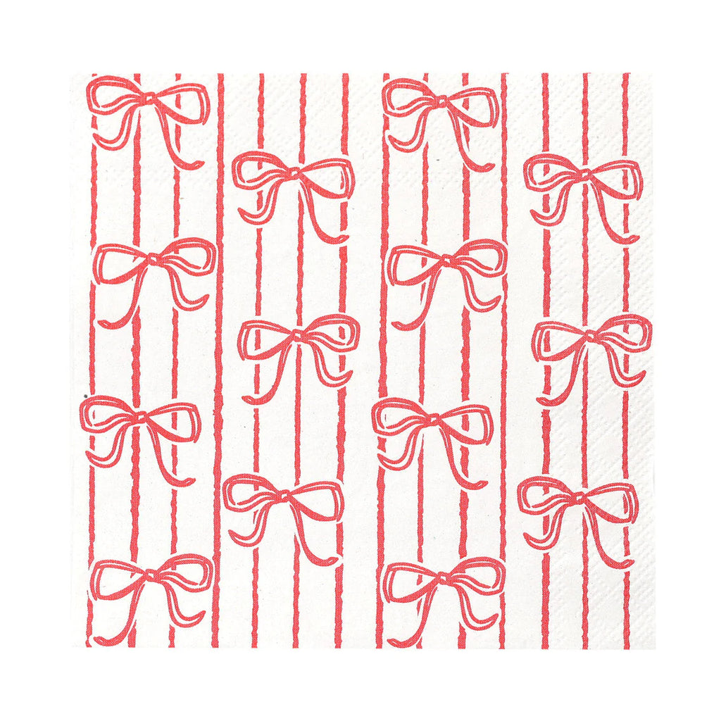 Add a bow to every cheer with these charming cocktail napkins. Featuring rows of red bows on a crisp white background, they bring playful polish to every place setting.