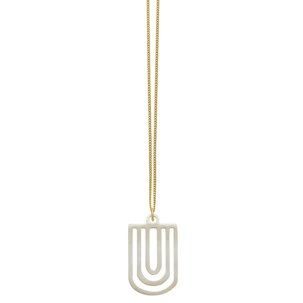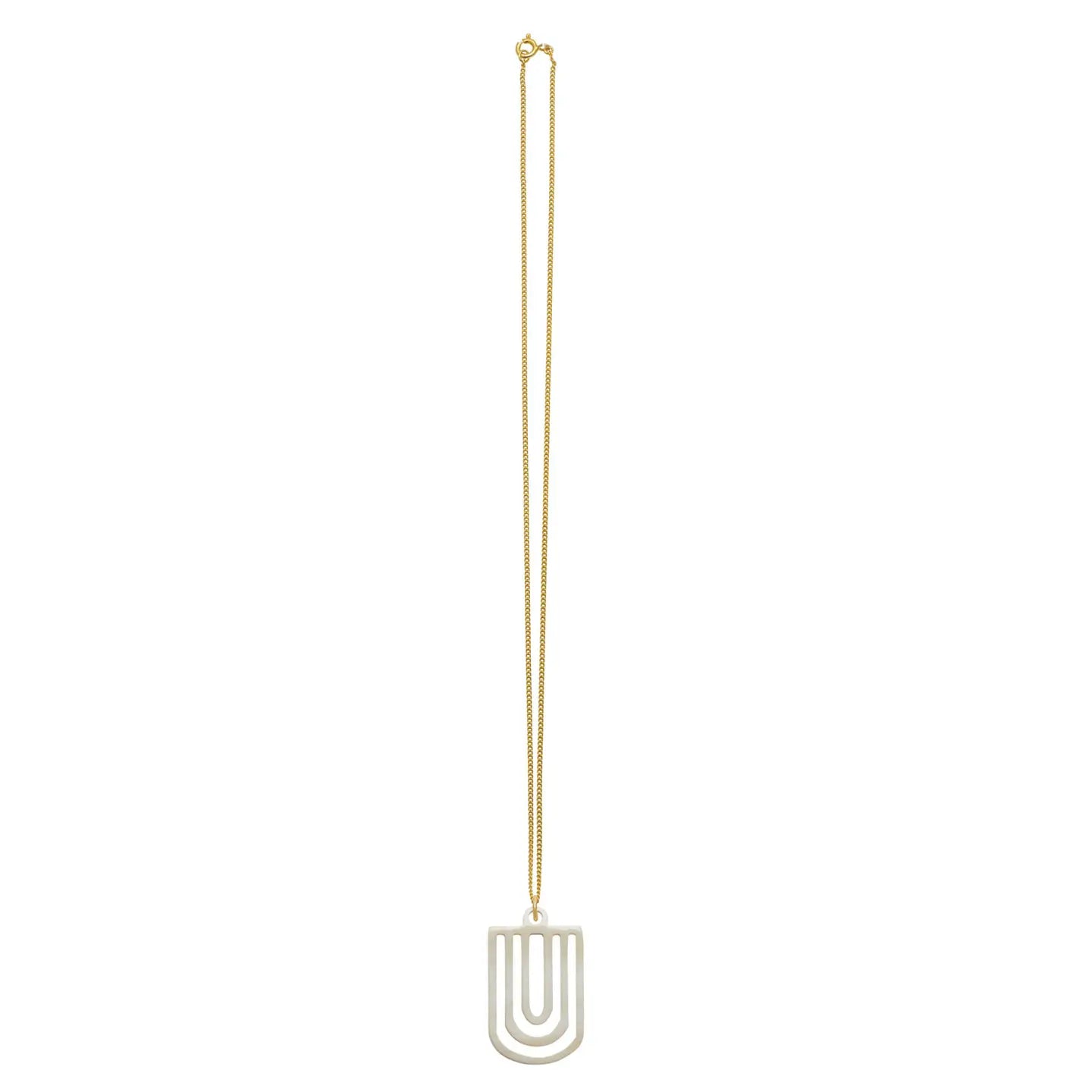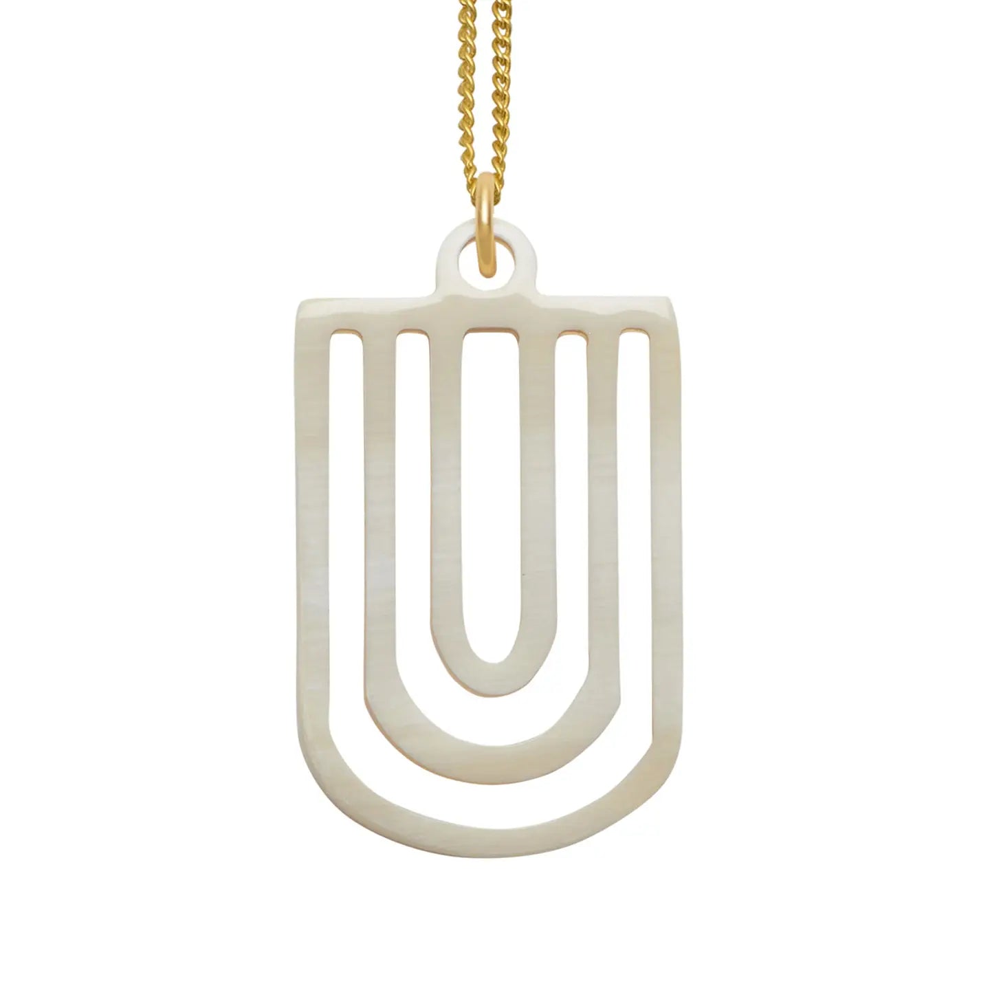 This striking White Natural Buffalo Horn Geometric pendant is a perfect fusion of contemporary design and natural elegance. Crafted from ethically sourced white horn, it features a bold cut-out pattern that exudes a modern, architectural feel. The organic texture of the horn, with its unique natural grain, adds depth and individuality to every piece, ensuring no two are exactly alike. Set on a fine 18ct gold plated silver 20-inch chain this pendant offers a beautiful contrast between raw, natural material and refined metallic shine. It's bold design adds a playful, artistic touch, making this the perfect statement accessory.
